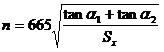 ①式與傳統(tǒng)求轉(zhuǎn)速公式完全一樣,但它誘導(dǎo)的前提是截然不同的,它是完全根據(jù)動(dòng)顎運(yùn)動(dòng)軌跡求得的,完全符合復(fù)擺顎式破碎機(jī)動(dòng)顎運(yùn)動(dòng)的實(shí)際情況。而傳統(tǒng)求得式的結(jié)果是建立在動(dòng)顎平行移動(dòng)的基礎(chǔ)上,完全不符合動(dòng)顎實(shí)際運(yùn)動(dòng)感情況,并相差懸殊。且根據(jù)①式可知,轉(zhuǎn)速n、噬角a和擺動(dòng)行程Sx三個(gè)參數(shù)是相匹配的。當(dāng)機(jī)構(gòu)設(shè)計(jì)后Sx為定值,主軸轉(zhuǎn)速n值隨動(dòng)顎壓縮到終點(diǎn)時(shí)齒面噬角a值改變而改變。